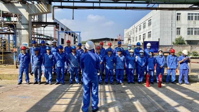 为进一步加强公司危化品储存、转移过程中安全管理工作,树立“安全第一、预防为主、综合治理”的安全方针,切实提升公司员工的安全意识和对突发事件的应急反应速度和应急救援能力,最大限度减少人员伤亡和财产损失,把事故危害降到最低限度。以此为目的,浙江华晶氟化学科技有限公司于2021年6月23日上午8:30—10:00举行了“罐区泄漏着火应急演练活动”。