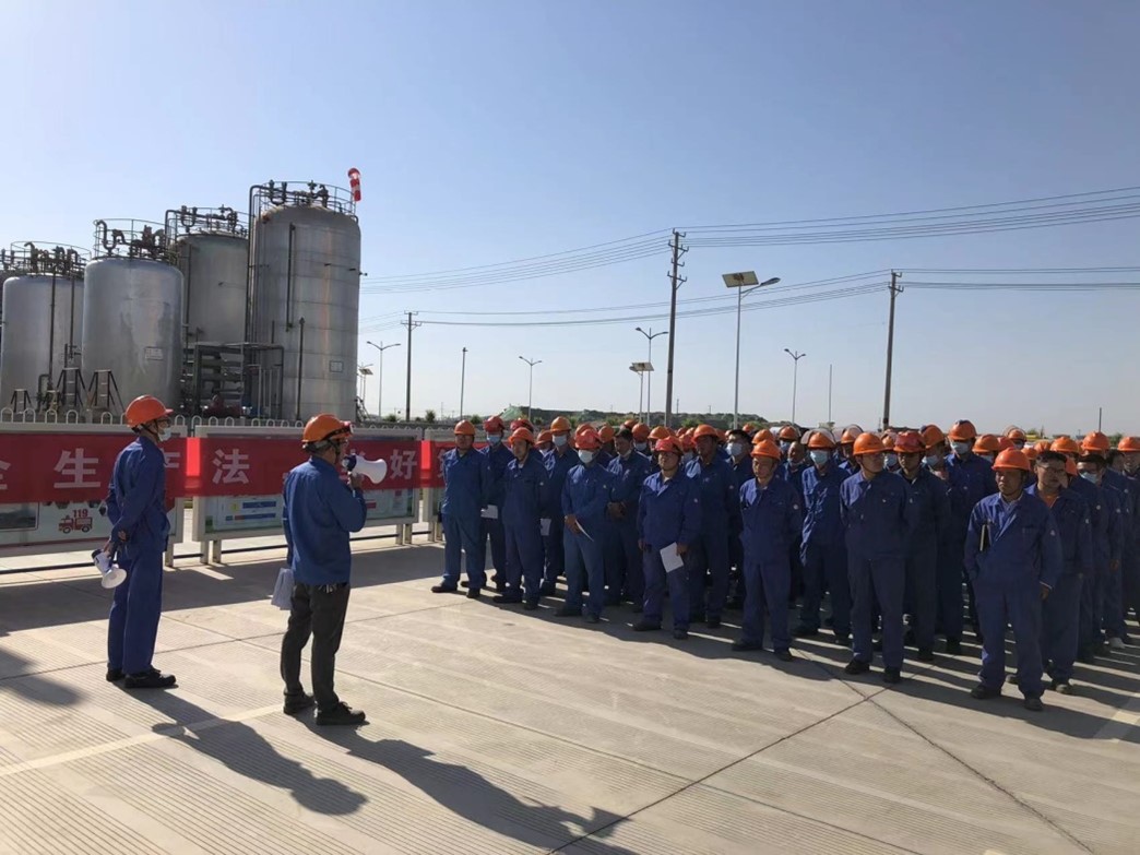 6月1日上午8:50在兰州康鹏威耳化工有限公司门前广场组织召开2022年“安全生产月”动员大会,公司中层管理人员、各部门员工参加。