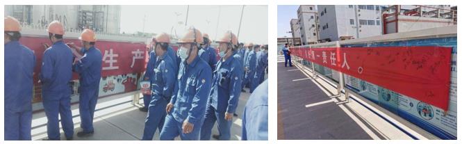 3、活动结束之际,全体参加活动人员依次在“安全生产月”活动条幅上郑重签名。