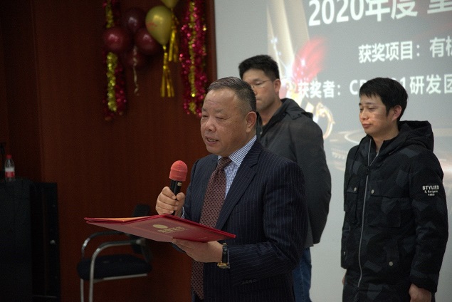 表彰会上,创始人、董事长杨建华博士对重大项目奖取得的成绩予以肯定,并赋予厚望。杨博士表示,康鹏在2021年起的以后几年里,将继续以高端化学品中的材料化学品和含氟化学品为发展方向,我们长期发展的液晶材料和近几年新发展的OLED材料,锂电池材料和有机硅材料目前在各自的细分领域里都占有重要的地位!杨博士鼓励大家充分发挥自主性、不断挖掘潜力,期待有更多像有机硅CPC101一样的项目脱颖而出!